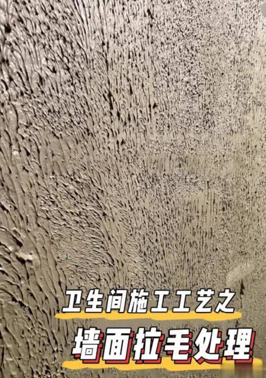 5、卫生间做好防水层后,一定要先进行拉毛处理再铺贴瓷砖。拉毛是墙面基层的一种工艺方法,旨在增加墙面的粗糙度,从而大大提高水泥砂浆与墙面的粘合力,防止后期瓷砖脱落。很多师傅不会主动提出这一步骤,如果直接在防水层上铺设瓷砖,墙面很容易出现空鼓和脱落现象。